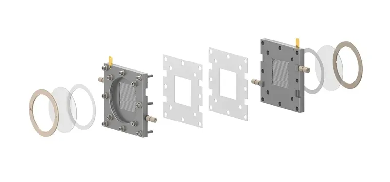 The cell is mainly used for research-based testing of electrochemical carbon dioxide reduction, alkaline anion exchange membrane water electrolysis, and electrochemical processes